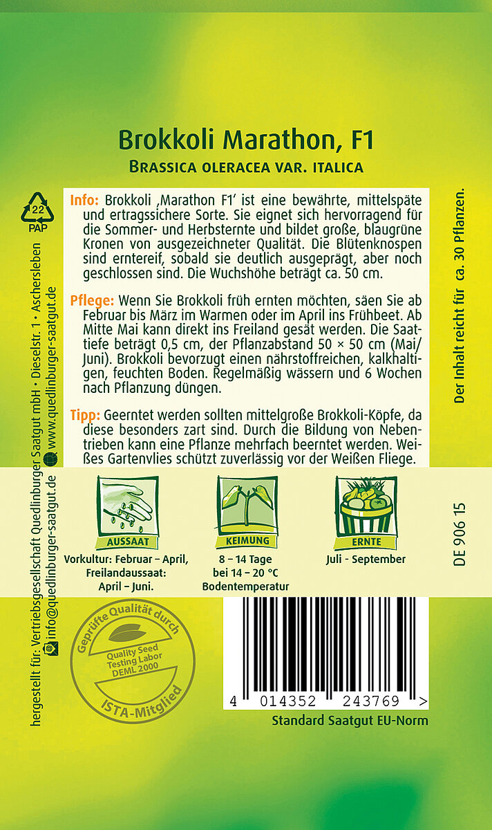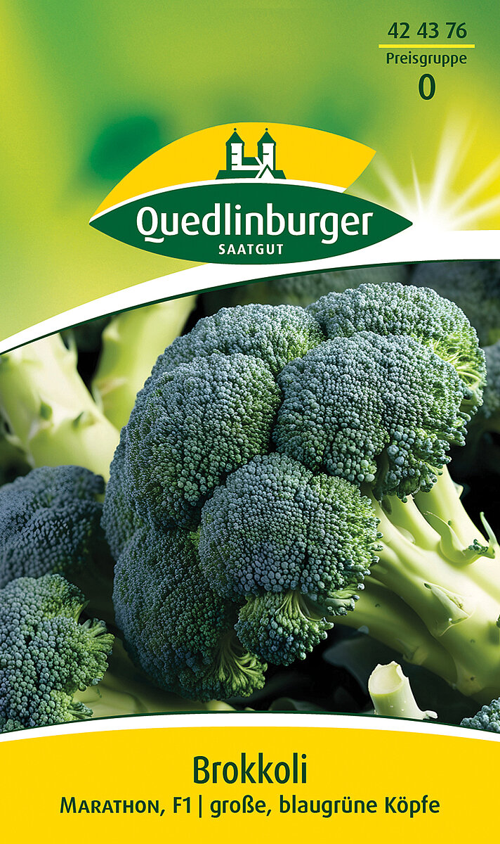 QuedlinburgerInfo: Brokkoli ‚Marathon F1‘ ist eine bewährte, mittelspäte und ertragssichere Sorte. Sie eignet sich hervorragend für die Sommer- und Herbsternte und bildet große, blaugrüne